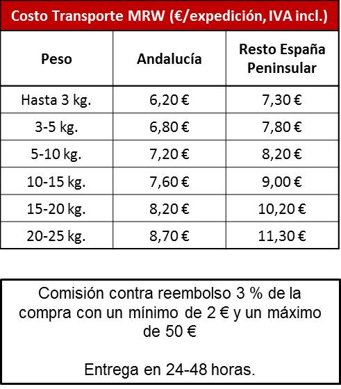 Los envíos los realizaremos a través de MRW e-commerce. El pedido realizado por usted le será entregado en un plazo máximo de 24h-48h, los pedidos realizados de lunes a Jueves. Los pedidos realizados los viernes, sábados y domingos se entregan el Martes, desde que le hemos hecho la confirmación del pedido.