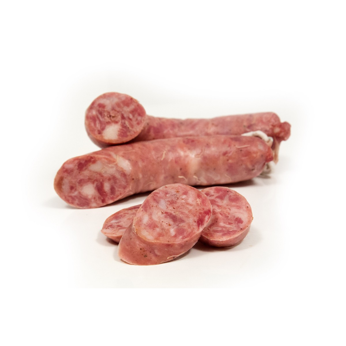 Ingredienes: Carne y panceta de cerdo, fécula, sal especias, dextrosa, proteína de soja, fosfato E-450i, E-452i, potenciador del sabor E-621, antioxidante E-301, E-331, conservador E-250, E262 y E-331,conservadores E-250, E-262 y E-331, colorante E-120